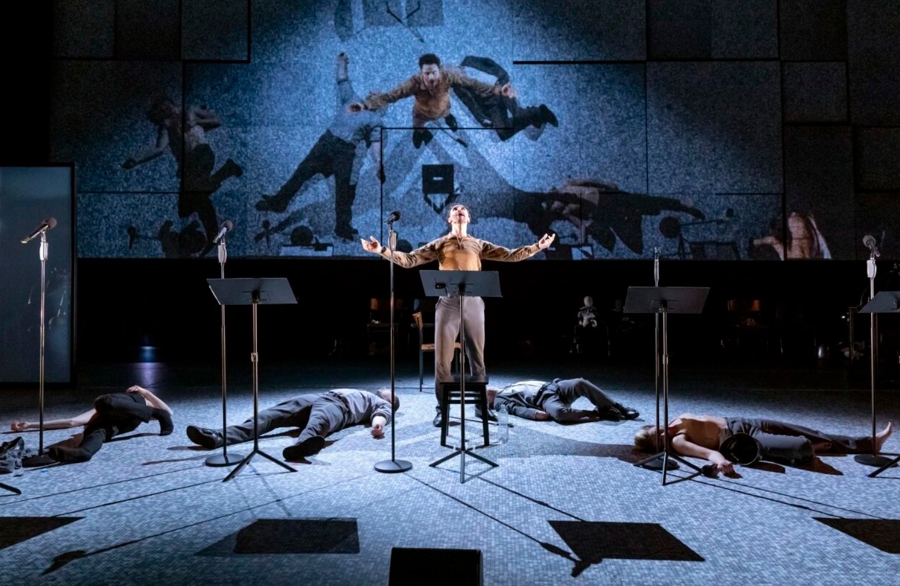 所以,在麦克伯尼排练的初期,德国演员们反复地“纠正”英国导演的表演思路和调度:“他不懂德语,我们双方磨合了很久,很多时候要告诉他,他设想的表演效果能用英语做到,但在德语尤其克莱斯特的德语里,那必须调整。”麦克伯尼让演员们接力地念出原作的长句,他试图构造众声喧哗的公共讨论的现场,这种政治戏剧的追求和德国演员对文学审美的追求殊途同归了,双方找到共同的频道,这就是“集体的多声部”。
